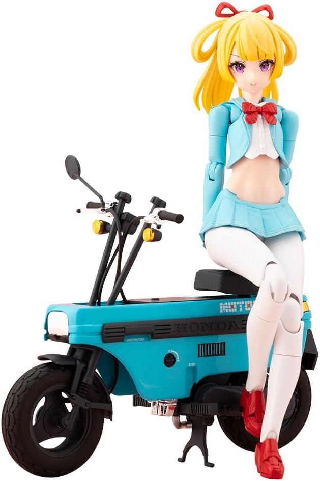 Plastic SF/Anime Character Assembly Kit Megami Device × Honda Collaboration! From the “Beautiful Girl × Mechanic” series ‘Megami Device’, a collaboration model featuring the “BUSTER DOLL” series Knight and Aoshima Bunka Kyozaisha's scale model “1/12 Honda AB12 Motocompo '81” is now available! 【Accessories/Gimmicks】 ・Includes an original-color Aoshima Cultural Educational Materials “1/12 Honda AB12 Motocompo '81” specially created for this product. ・The tire parts included with the Motocompo are a completely new design. ・Additionally, new helmet parts are included. ・BUSTER DOLL Knight features a vivid original color scheme inspired by “Alice,” combining sky blue and white! ・The eye color also adopts a new shade matching the body color. One pre-painted face part is included. ・The skin parts use Skin Color B, which has a slightly redder tone than usual. ・Uses the “Machinica Block2-M” as the base body. Assembly ease and beauty have been pursued to the utmost. ・All three types of wrists are plastic. The weapon-holding wrists feature a shape compatible with both round and square grips, allowing for easy insertion and secure holding. ・Includes a dedicated stand. Provides more stable support for free-standing display than previous versions. ・3mm diameter joints placed throughout the body and head compatibility allow for interchangeable use with existing parts from the ‘M.S.G’, ‘Frame Arms’, ‘Frame Arms Girl’, ‘Hexa Gear’, ‘S?sai Sh?jo Teien’, ‘Arcanadia’, and ‘Megalomaria’ series. ※Please note: Plastic model adhesive is required for assembling the “1/12 Honda AB12 Motocompo '81”. The vanguard of the next-generation Megami Device series, the “BUSTER DOLL Series” equipped with “Machinica Block2-M,” and Aoshima Bunka Kyozai's motorcycle plastic model “1/12 Honda AB12 Motocompo '81” arrive together in one package! The BUSTER DOLL series, featuring an evolved body structure and proportions for easy assembly and playability, meets a motorcycle plastic model to create a whole new kind of fun! (C) AOSHIMA BUNKA KYOZAI Co,.Ltd. (C) KOTOBUKIYA (C)Masaki Apsy (C)Toriwo Toriyama ----- Work Megami Device Series Character Plastic Model Product Size BUSTER DOLL Knight Alice: Total Height approx. 150mm (1/1 scale), Vehicle: Total Length approx. 108mm (1/12 scale) Product Specifications Plastic Model Number of Parts 51 to 200 Materials PS・PE・ABS・POM・PVC Prototype Production Maki Asai, Tokuhiro Fukumoto, Yoshimoto Art Factory, Toriwo Toriyama, Aima (Aiprint) Product Code KP836 Initial Release Month March 2026 *Images show prototype samples. Actual product may differ slightly. Also painted for photography purposes. (From the Kotobukiya website)