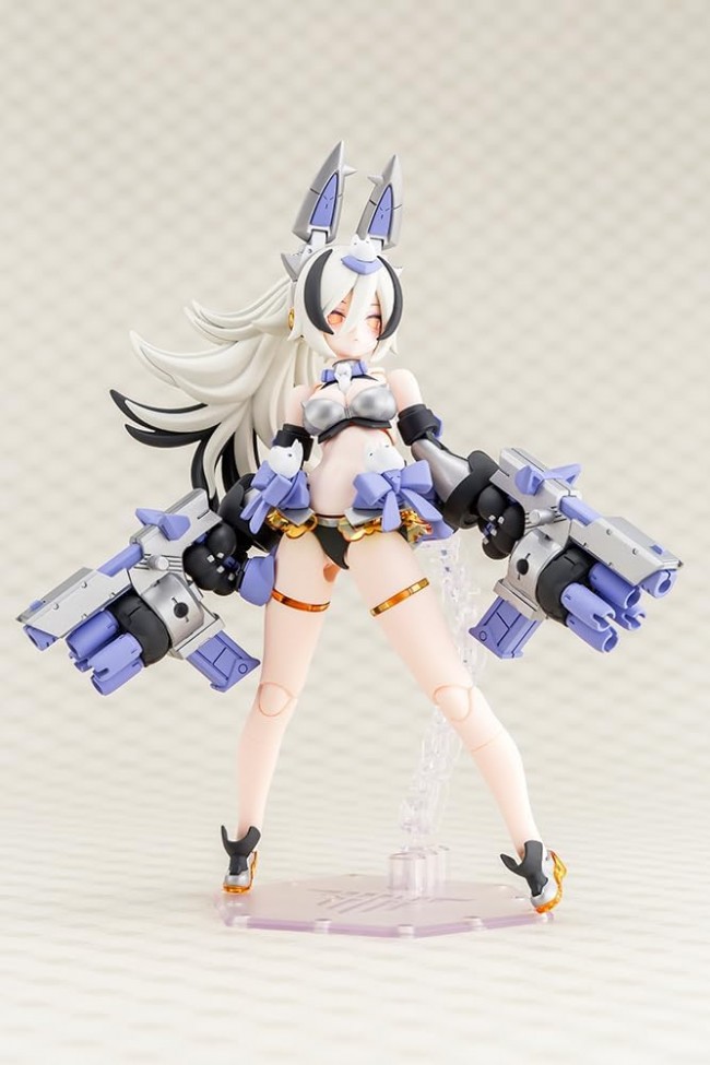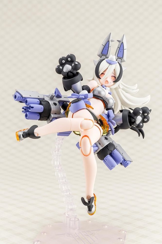 Plastic SF/Anime Character Assembly Kit The latest entry in the “Beautiful Girl × Mechanic” series, Megami Device! PUNI☆MOFU Silver Wolf!! A color variation of the highly acclaimed “PUNI☆MOFU Wolf” joins the lineup. Features striking silver wolf coloring and three newly designed faces. Furthermore, to maximize enjoyment of the new, easy-to-assemble and playable base body, the “Skin Color C” ratio has been increased to the extreme, creating a color scheme reminiscent of a swimsuit. Design is, of course, once again handled by BLADE! Featuring the “Machinica Block2-M” designed by Maki Asai, it fully brings out the appeal of the dignified illustration. 【Accessories/Gimmicks】 ・Includes 3 newly drawn face parts by BLADE. ・Includes decals for arm markings and accent colors on various parts. ・Enjoy significantly changing the silhouette through reconfiguration, such as the “Base Mode” showcasing pure proportions or the “Armed Mode” with various parts attached. ・The main weapon, the dual pistols “Howling PM5”, can be mounted on both arms or the back to create various action poses. ・Swap parts to recreate both the “Armed Mode” with armor and the “Base Mode” without armor. ・The “Machinica Series” base body's incredible range of motion allows weapons-ready poses and seated poses to look natural. ・Includes a variety of weapon parts and joint parts. Play out various combat scenes. ・Includes a dedicated stand. ・Compatibility with existing series like ‘M.S.G’, ‘Frame Arms’, ‘Frame Arms Girl’, ‘Hexa Gear’, ‘S?sai Sh?jo Teien’, ‘Arcanadia’, and ‘Megalomaria’ is possible through 3mm diameter joints placed throughout the body and head compatibility. 【About Megami Device】 This plastic model series envisions a “near-future battle hobby” where you can build, modify, and battle 14cm tall, self-standing figure robots, much like enjoying plastic models. It centers on the newly designed “Machinica Series” core body by Maki Asai, a pioneer in articulated figures, with characters and mechs handled by various designers. Molded parts feature pre-separated colors, with faces pre-painted via tampo printing. Assembly alone yields a finish close to the intended image. The use of 3mm diameter joint holes ensures part compatibility within the series and allows play with many previously released Kotobukiya plastic model parts. (C) KOTOBUKIYA (C)Masaki Apsy (C)Toriwo Toriyama ----- Product Specs Series Megami Device Series Character Plastic Model Scale 1/1 Product Size Total Height: Approx. 160mm Product Specifications Plastic Model Number of Parts 201-400 Material PS・ABS・POM Prototype Production Maki Asai, Tokuhiro Fukumoto, Tasuku, Toriwo Toriyama, Aima (Aiprint) Product Code KP850 Initial Release Month March 2026 ※Images show prototype samples. Actual product may differ slightly. Also painted for photography purposes. (From the Kotobukiya website)