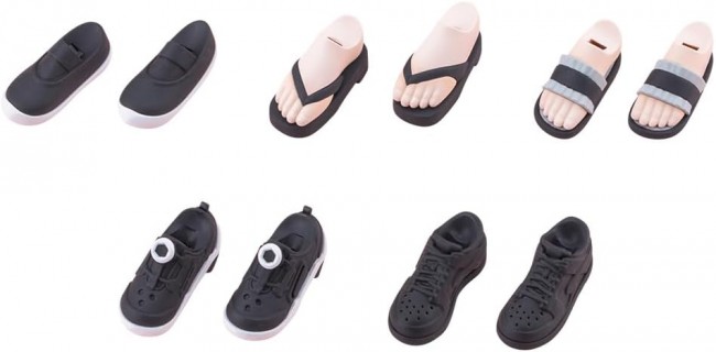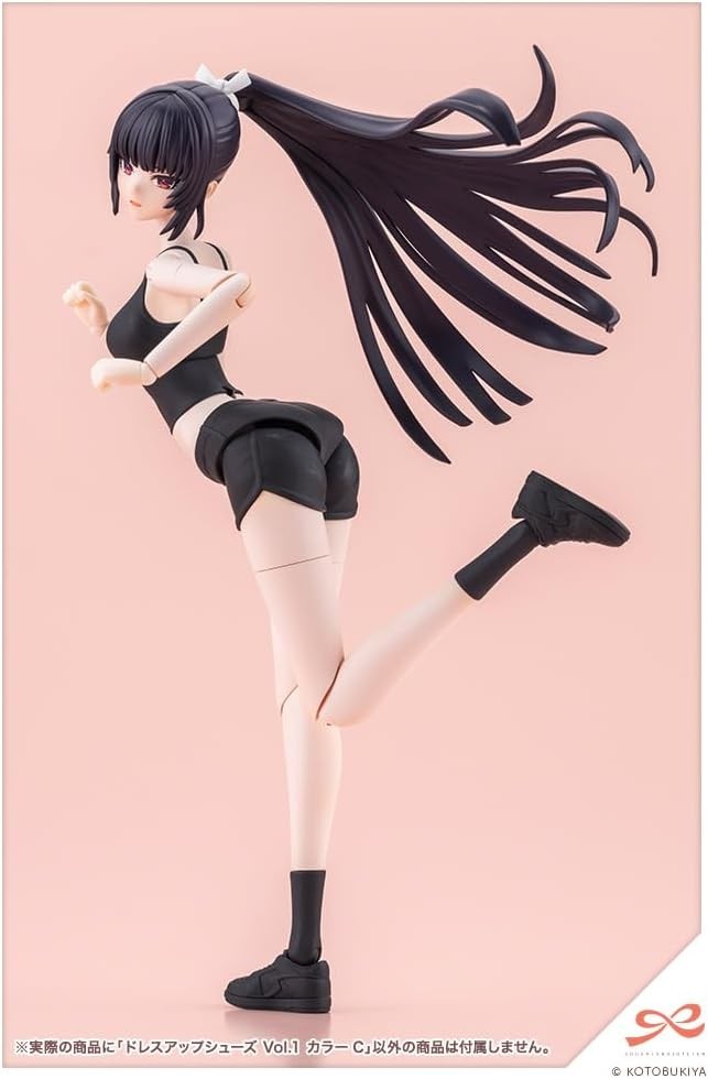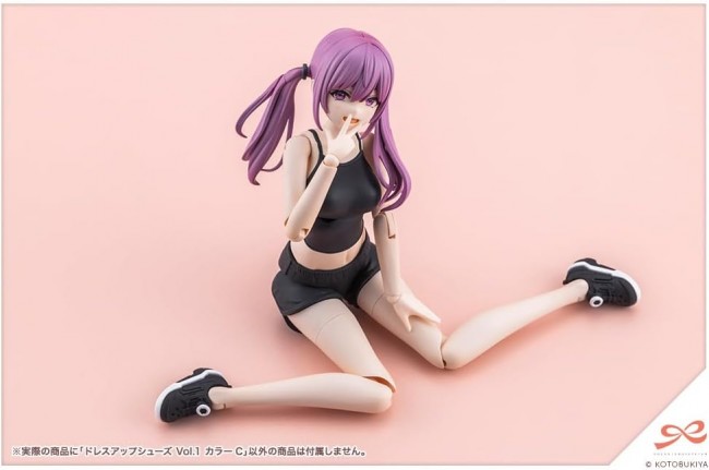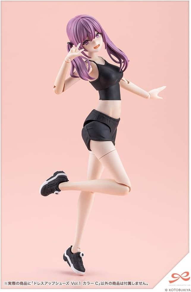 Figure Accessories & Parts Color variations of “Dress-Up Shoes Vol.1” with altered molded colors are now available! This shoe part set connects to the ankles of the “Dress-Up Body” series, allowing you to enjoy changing outfits for the feet. It returns in cool monochrome colors designed to match the fair-skinned Skin Color C! ▼Key Features 【Dance Shoes】 Molded in two colors, white and black, they can be enjoyed as classic-colored dance shoes without painting. 【Dial Sneakers】 The new staple tech sneakers for active students. Perfect for creating a wide range of scenes, from everyday outings to club activities. 【Sneakers】 Versatile, casual sneakers. The unpainted version of the sneakers used for Yuki Madoka [Momo Sakura High School・Summer Uniform] Black Canvas. A solid black color that pairs easily with various outfits. 【Frill Sandals】 Sandals designed to complement both skirts and pants. Molded in three colors: white, black, and skin tone. 【Geta】 Geta to color your summer memories. Pair with the separately sold “Tiny Closet Yukata” to complete a yukata outfit. 【Skin-Tone Molding Color】 The skin-tone molding color for the frill sandals and geta uses fair-skinned Skin Color C. This allows for play with the “Dress Up Body [S] Color C Ver.”, “Dress Up Body [M] Color C Ver.”, and “Dress Up Body [L] Color C Ver.”, among others. ※Can also be connected to some uniform bodies. Due to shape constraints, they are not compatible with all characters. ▼Accessories 1) Dance Shoes × Left & Right 2) Dial-Adjustable Sneakers × Left & Right 3) Sneakers × Left & Right 4) Frill Sandals × Left & Right 5) Geta × Left & Right Product Specifications Series S?sai Sh?jo Teien Series Character Plastic Model Scale 1/10 Product Size Total Length: Approx. 20mm Product Specifications Plastic Model Kit Number of Parts 1?50 Material PS・ABS Design Yunosuke Maruya Product Code MV021 Initial Release Month June 2026 (C) KOTOBUKIYA ※Images show prototype samples. Actual product may differ slightly. Items are painted for photography purposes. (From the Kotobukiya website)