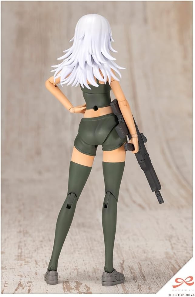 Plastic Assembly Figure Kit Pre-orders are now being accepted for beautiful girl plastic models, including Megami Device and 30MS. From the "Ms. XX" spin-off series of Sousai Shojo Teien, "Wolf-san" makes a surprising return with a tan! ▼Special Features [Characters with Skin Color D] The body features the "Dress-Up Body [L]" with a modified molding color. The skin color is Color D, which evokes a healthy tan. The set includes two body types: a "Relax Wear" type wearing a camisole and shorts, and an "Innerwear" type that can be dressed in various doll clothes, such as those from the Tiny Closet (Kotobukiya exclusive, sold separately). The innerwear and sock colors have been changed to a stoic khaki. [Selectable Sock Types] Choose from "Short Socks," "High Socks," and "Over-the-Knee Socks," and the socks are completely interchangeable from the knee down. *The thighs used with the short socks and knee socks types are the same as those used with the bare feet type. [Three Neck Joint Lengths] Three types are included: "Type A (compatible with Sousai Shojo Teien)," "Type B (compatible with Megami Device)," and "Type C (compatible with doll clothes)." Type B has a slightly longer neck than Type A to accommodate the head of Megami Device. Type C has an even longer neck than Type B and is used to prevent the neck from being obstructed by the collar of doll clothes. Two neck ball joint diameters are included: "5mm" and "6mm." The 5mm type is compatible with "Sousai Shojo Teien," "Arcanadia," "Frame Arms Girl," and "Mugen Kaikou Megaromaria," while the 6mm type is compatible with "Megami Device." [Hairstyle] The molding color of the "Arrange Wig Wolf Layer Cut" has been changed to white. This hairstyle has a sharp and wild impression that complements the military-colored body. [Facial Expressions] Four facial expressions are included: "Normal Face Looking Left," "Smug Face Looking Right," "Concentrated Face," and "Scowling Face." Each expression comes in both painted and unpainted versions. Water-transfer eye decals with different eye directions are included, allowing you to apply them to the unpainted version to create your own original facial expressions. [M.S.G] Includes the "Weapon Unit 37 Assault Rifle 2" weapon, molded in black. By swapping between shorter and longer barrel and muzzle lengths, you can change the weapon's form depending on the situation, from close to medium range to medium to long range. ▼Accessories 1) Relaxwear Type Torso x 1 2) Innerwear Type Torso x 1 3) Short Sock Leg Parts x 1 (each leg part) 4) Knee-High Sock Leg Parts x 1 (each leg part) 5) Over-the-Knee Sock Leg Parts x 1 (each leg part) 6) Bare Feet Parts x 1 (each leg part) 7) 12 Types of Wrist Parts "Handle Hand (Normal)," "Handle Hand (Narrow)," "Handle Hand (Wide)," "Handle Hand (Round)," "Gripping Hand," "Pointing Hand," "Open Hand," "Graceful Open Hand," "Strong Open Hand," "Closed Fist," "Sword Holding Hand," and "Gun Holding Hand" x 1 (each hand part) (Only one set of wrists is included; the same wrist parts cannot be used for both the Relaxwear and Innerwear types.) 8) Neck Joint Type A (for Relaxwear) x 1 9) Neck Joint Type A (for Innerwear) x 1 10) Neck Joint Type B (for Relaxwear) x 1 11) Neck Joint Type B (for Innerwear) x 1 12) Neck Joint Type C (for Relaxwear) x 1 13) Neck Joint Type C (for Innerwear) x 1 14) Neck Ball Joint 5mm Type x 2 15) Neck Ball Joint 6mm Type x 2 16) Optional Ankle Joints x 1 each 17) Chest Joint Spacer x 2 18) Hairstyle Part (1 type) "Wolf Layer Cut" x 1 19) Bangs Part (2 types) x 1 "Standard Type" and "Glasses Compatible Type" 20) Facial Expression Parts (Pre-painted Type) "Standard Face (Left Facing)," "Smug Face (Right Facing)," "Concentrated Face," and "Scary Face (Front Facing)" x 1 each 21) Facial Expression Parts (Unpainted Type) "Standard Face (Left Facing)," "Smug Face (Right Facing)," "Concentrated Face," and "Scary Face (Front Facing)" x 1 each 22) Water Transfer Facial Expression Decal x 1 23) Weapon Unit 37 Assault Rifle 2x1 (C) KOTOBUKIYA ----- Product Specifications Product Sousai Shojo Teien Series Character Plastic Model Scale 1/10 Product Size Total Height: Approx. 163mm Product Specifications Plastic Model Number of Parts 201-400 Materials PS, ABS, POM, PVC Design Proslink Co., Ltd., Shigeo Mori, Takashi Tanibayashi, Yunosuke Maruya Product Number JK091 Initial Release Date July 2026 *The image is a prototype. It may differ slightly from the actual product. It has also been painted for photography purposes. (From the Kotobukiya website)