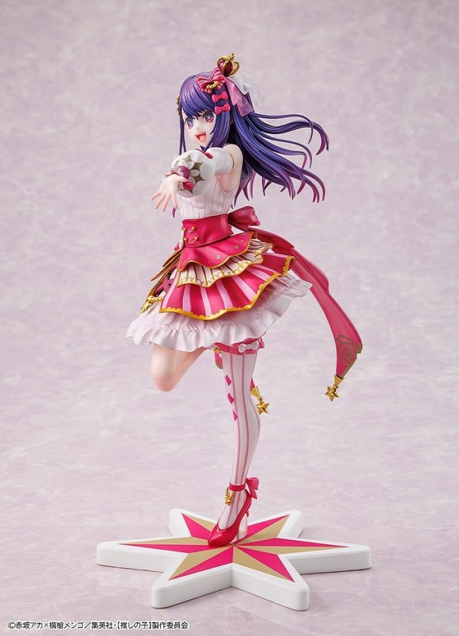 Completed Figure Legendary idol “Ai” is sculpted based on an illustration from the [Children of Suishin] exhibition! The illustration drawn for the TV anime “Lies and Ai” has been sculpted into a scale figure. The figure's dynamic posing, flowing hair, and fluttering side tails make for a figure that can be enjoyed from every angle. The starry eyes that characterize the Ai, as well as her bright and glittering outfit, have been carefully sculpted with attention to detail. We hope you will take a look at this gorgeous and unique figure of Ai. Title Ai's Child Specifications Complete painted plastic figure 1/7 Scale Exclusive pedestal included Height: approx. 230mm Sculptor Eless Coloring Otaken Cooperation En craft Planning and production KDcolle (KADOKAWA Collection) Maker KADOKAWA (c) Akasaka Aka × Mengo Yokojari / Shueisha, 【Tsuyushi-no-ko】Production Committee The photos shown are of sample products. Some specifications may differ from the actual product. The painting process of the product is done by hand, so there may be slight differences in each product. Please understand this in advance. The pedestal and support columns are prototypes. They may differ from the actual product. (From Good Smile Company website)