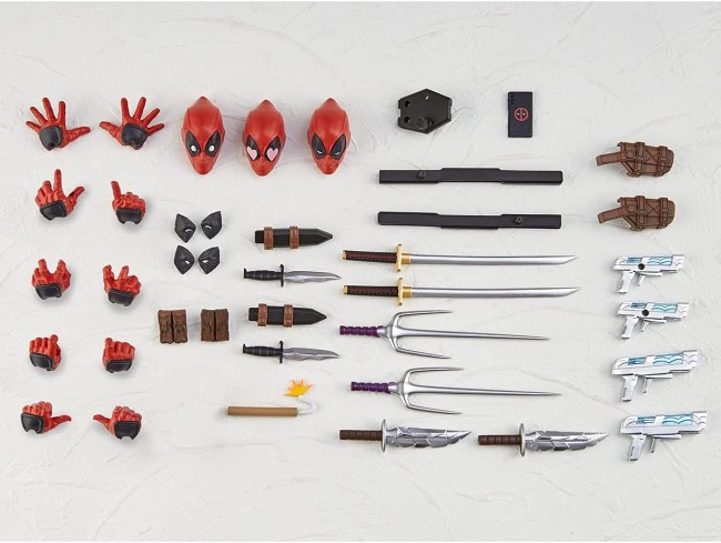 Revoltech Series. [Deadpool ver. 2.0] is going on resale! The figure has both a massive, well-defined body and Yamaguchi's mobility, allowing you to recreate poses ranging from powerful action poses to comical poses. The pouch, holster, scabbard and other parts can be replaced through the holes in the body, allowing you to change the armament style to your liking. A variety of handheld items are also included. In addition to the Japanese sword, knife and sai (an oriental sai), she also comes with a toy gun, dynamite and a smart phone to check her SNS, making her a very fun Deppu to play with. Four face parts and six optional eyes are included. Face parts include a standard face, a frown, a surprised face, and a smiling face, all of which can be seen through the mask thanks to the sculpted mouth. Eye parts are also included and can be interchanged with the other face parts. Combine them to create a variety of expressions! Accessories Optional face x 3 kinds Optional hands x 5 Toy gun (A) (B) × 2 Holster Knife (A) (B) x 2 Knife sheath × 2 Knife (A) (B) x 2 Sheath × 2 Connecting parts for scabbard sai x 2 Optional eye parts (5 kinds) Smart Phone Dynamite Display stand [Size] Approx. 17cm 36 points of articulation [Material] Painted ABS [Product Series] Amazing Yamaguchi (c) 2022 MARVEL