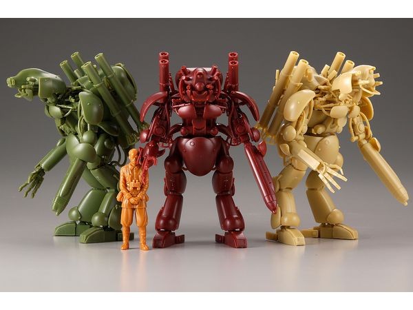Plastic Sci-Fi/Animation Character Assembly Kit From 1/35 scale Maschinen Krieger, a gorgeous set of three newly-molded Glow Surfund Armed and Reinforced models, plus "Uncle Jeri Can" as the first plastic kit! From "Ma.K." (Maschinen Krieger) comes a new 1/35th scale plastic model kit of the Glow Surfund armed and reinforced model "Dachshund Masquerade Cyclope". The Cyclope has a reinforced back Panzerschreck with 2 x 2 guns and larger shoulder armor. Dachshund equipped with a high-performance search-and-seek seeker on its head. Three models of Dachshund equipped with face guards! The head and elbows can be assembled at different angles, allowing you to add expressions to the pose of each aircraft. The product name "Final Hund Set" was given by the original creator, Hiroshi Yokoyama himself, as these are the last three ground-based models of the Glow Surfunts. The figure even includes "Uncle Jeri Can," a character that appeared in the "S.F.3.D." series at the time of its serialization! Enjoy the world of Maschinen Krieger that can be expanded through the combination of mecha and figures. One decal with new markings is included. Maschinen Krieger Final Hund Set & Uncle Jeri Can Overseas product name: Maschinen Krieger FINAL HUND SET & Jerry Can Man ■Series Name ARTPLA Sculptor Akira Tani (OZ Corporation) / Taro Murai Product No. AP042 Size 1/35 scale Height: approx. 95mm Material indication Plastic model kit (HIPS) Kit Contents 1 Dachshund 1 Masquerade 1 Cyclops 1 Jelly Can Uncle 1 decal included Molding colors Dark green (Dachshund) Red brown (Masquerade) Dark yellow (Cyclops) Caramel Brown (Uncle Jerry Can) (C) Kow Yokoyama2024