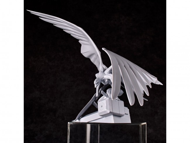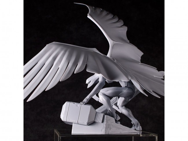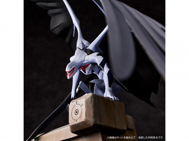 Plastic Sci-Fi/Animation Character Assembly Kit Beautiful and eerie Evangelion mass production machine is now available as a plastic kit! The huge wings are molded in one part! From “Neon Genesis Evangelion The Movie Air / Magokoro wo, Kimi ni” comes the Evangelion mass production machine to the ARTPLA lineup. The figure is based on a prototype by Akira Tani (OZ Co., Ltd.) and features a slender yet muscular body, a slim head, and beautifully deployed giant wings on its back. The characteristic wings (470mm in width) are molded in a single part, achieving both a beautiful appearance and sturdiness in assembly. The simple parts configuration, which are fixed to the pose, allows the figure to be assembled in a fraction of the time. The pearl gray coloring gives this kit the appearance of a sculpture just by assembling it. Of course, you can paint the kit to make it even more enjoyable and create your own Evangelion mass production machine. The original resin kit was produced in 1997. All parts were scanned in 3D and replaced with digital data. In addition, the shape of the wing parts were fine-tuned from the original prototype at that time. By adjusting the angle of attachment and the undulating, wavy shape, the impression of the sculpture changes moment by moment from various 360-degree angles. The base rubble has also been increased in size to sturdily support the top-heavy shape, and additional details have been added. SCULPTURE WORKS Evangelion Mass Production Machine “Assault Series Name ARTPLA Sculptor Akira Tani (OZ Corporation) Part Number AP044 Size Not to scale (Height (wing tips) approx. 280mm) Material indication Plastic model kit (HIPS) Kit Contents 1 Evangelion mass production machine Molding Color Pearl Gray (C) Color/EVA Production Committee
