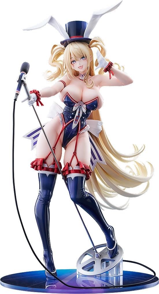 Finished Figure Usausa Idol on the Stage♪ From the wildly popular smartphone game “Azur Lane,” the Union-affiliated Super Cruiser ‘Guam’ is brought to life in her “Charming Staging” costume. The dazzling stage outfit, based on a bunny girl design, is faithfully reproduced down to the finest details. Please note Guam's bright, energetic expression and her overwhelmingly voluptuous body lines that maximize her appeal. Her trademark golden twin tails express dynamic movement and the delicate flow of each strand. Her starry eyes and mischievous expression perfectly embody the “Enchanting Entertainer.” Her overflowing proportions are pursued through meticulous sculpting and soft skin texture painting. From the beautiful enamel-like gloss of her costume to the voluptuous lines of her thighs, every angle offers something captivating. Commanders, we invite you to experience Guam's most charming performance right in your hands. Product Specifications Title Azur Lane Specifications Plastic, Pre-painted Complete Figure 1/7 Scale Includes Dedicated Base Total Height: Approx. 300mm Prototype Production Akimofu Painting Ichiro Saibu Manufacturer Max Factory Distributor Good Smile Company (C) 2017 Manjuu Co., Ltd. & YongShi Co., Ltd. All Rights Reserved. (C) 2017 Yostar, Inc. All Rights Reserved. Important Notes About the Product The photos shown are of sample products. Actual products may differ in some specifications. As the painting process is done by hand, each product may have slight variations. Please be aware of this in advance. The base and support pillars are prototypes. They may differ from the actual product. (From the Good Smile Company website)