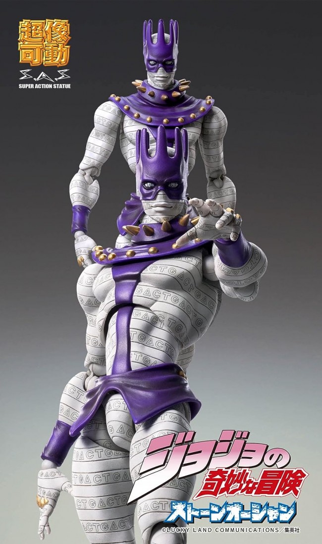 From the popular "Super Figure Action" series by Medicos Entertainment, "JoJo`s Bizarre Adventure Part 6: Stone Ocean", "Ws" has been re-released in a renewed package! The sculpting of each part of the figure has been faithfully reproduced, as well as the letters on the figure's entire body! She also comes with a head part with a different expression, two different illustrations of DISC, and six different hand parts, including a part that allows her to hold DISC! Set Contents Main body Dedicated pedestal Optional parts Height: approx. 160mm Material PVC&ABS&Nylon Specifications Painted posable figure Sculptor PROGRESS Sculpting Produced by Takumi Kobo (C) LUCKY LAND COMMUNICATIONS / Shueisha Product will not stand on its own. Please use the included pedestal. The photos shown are of the product under development. They are different from the actual product.