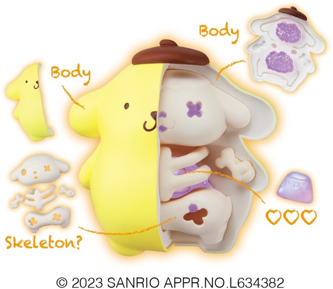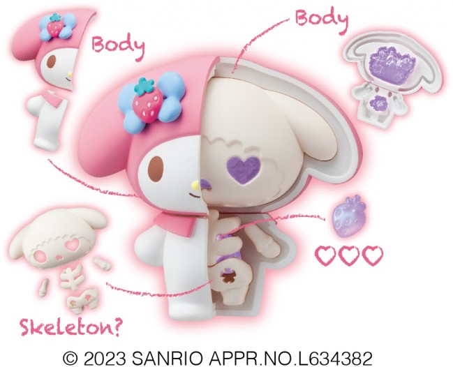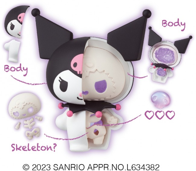 Trading Figures. KAITAI FANTASY Sanrio Characters" is back with a new look! KAITAI FANTASY" is a collection of figures inspired by the inside of the characters. Each part can be assembled and disassembled for play, and can also be displayed as is. This time, the clear parts are in a fancy and cute purple color. The important v(heart)v(heart)v(heart)v(heart) has been painted with aurora paint, making it sparkle and shine. Please enjoy the design that has been made even cuter since the last time. Product Size Approximately 80mm in height The image is for illustrative purposes only. Designs and specifications are still under development and are subject to change. All types will be available in one box.