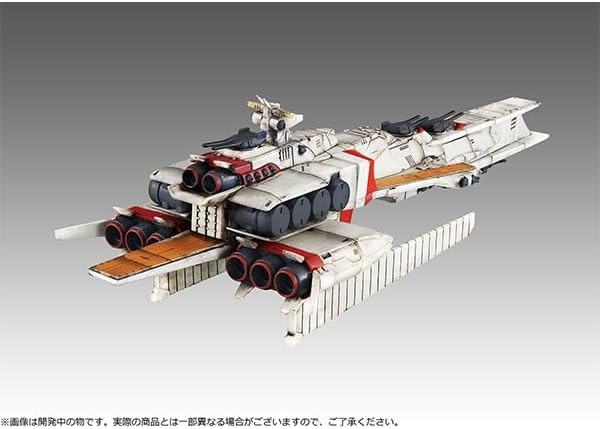 Gundam Fixed Pose Finished Product. Ra Cailum launches again! The Cosmo Fleet Special (CF-SP) is a series of space battleship figures developed by MegaHouse. The Gundam series has returned after a seven-year absence. The first figure to make its return is the re-release of the "Ra Cailum" captained by Bright Noah from "Mobile Suit Gundam: Char of the Counterattack". The ship's body, measuring approximately 17 cm in length, is a pre-colored finished product. The renewed version features a slightly stained paint job and comes with water-transfer decals for a more realistic look. In addition to the dedicated pedestal, three mini MS of the same scale (Nu Gundam, Sotheby's, and Re-Gazi Space Fighter form) are included, and can be placed on the catapult deck to help create a world view. Enjoy your Gundam fleet collection with the CF-SP. Product Composition Finished color-coded model ... 1 Mini MS figure ... 3 Dedicated pedestal ... 1 Size Approximately 170mm in length (C) Sotsu, Sunrise Please note that the actual product may differ slightly from the image. The image is for illustrative purposes only.