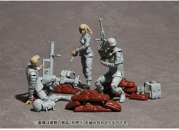 MS in Action, HCM Pro and other Gundam action figures. It is up to you to breathe life into these nameless soldiers! The G.M.G. series now has a new PROFESSIONAL series that users can enjoy as a custom base. The name of the series is "G.M.G. PROFESSIONAL. The figure is 1/18 scale (approx. 10 cm) and is movable in various parts, as before. The coloring is a monochromatic model, which greatly expands the range of customization. The included water-transfer stickers include a variety of eye expression variations, rank insignia, and various markings. You can create your own customized soldier. Various soldier-inspired armaments and hand parts are also included, and sandbags for the PROFESSIONAL series only are included for the Earth Federation Forces 01-03. The simple product structure keeps the price low, and allows users to add their own touches and images to these military figures. It is up to you to bring this nameless soldier to life! Product Composition Monochrome finished figure - 1 Water-transfer decals - 1 sheet Sandbags - 4 pieces Size Approximately 100mm in height (C) Sotsu, Sunrise Please note that the actual product may differ slightly from the image. The image is for illustrative purposes only.