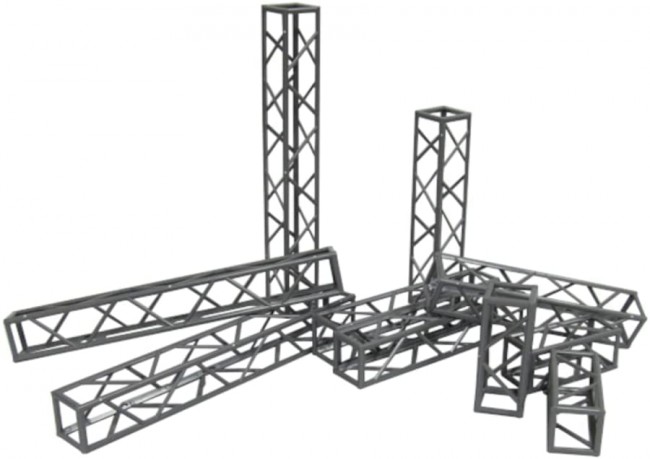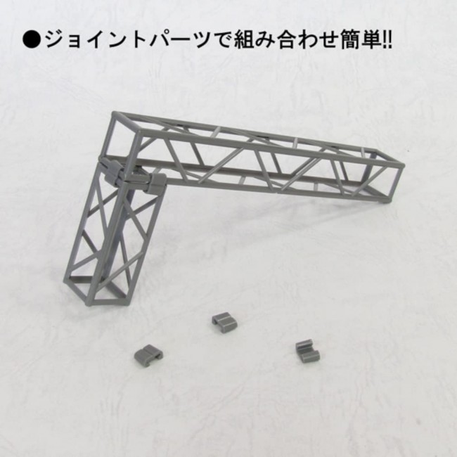 [Scale] Non scale [Size] Overall height: Large truss angle (150 mm), Medium truss angle (100 mm), Small truss angle (50 mm) [List of set contents] Large truss (corner): 6 sets Truss (corner) Medium: 6 sets Truss (corner) small: 4 sets Joint parts: 50 pieces Introducing a new item in the PMOA original accessory series! We will make a plastic kit of the "truss" used in booths at events and exhibitions. In addition to "stage" and "event booth", it is a highly versatile item that can be used in various ways, such as "railroad-related" or "abandoned factory".
