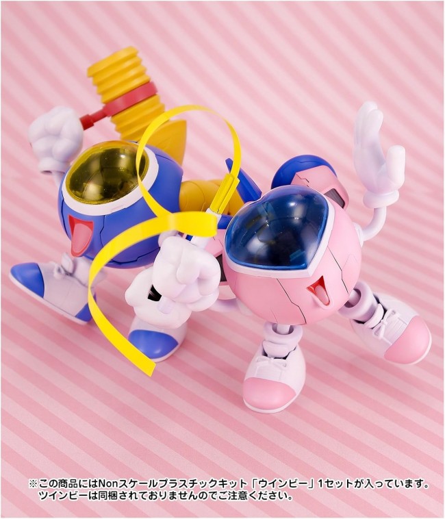 From KONAMI's “Twinkle Bee Rainbow Bell Adventure,” the second product following “Twinkle Bee”?Winbee?arrives as a plastic kit! Included as character-enhancing items are “open hand” and ‘mouth’ parts. A “ribbon” accessory exclusive to Winbee is also included, allowing you to enjoy combining it with the hand and mouth parts. Scale: Non-scale Total Height: Approx. 100mm (C)Konami Digital Entertainment