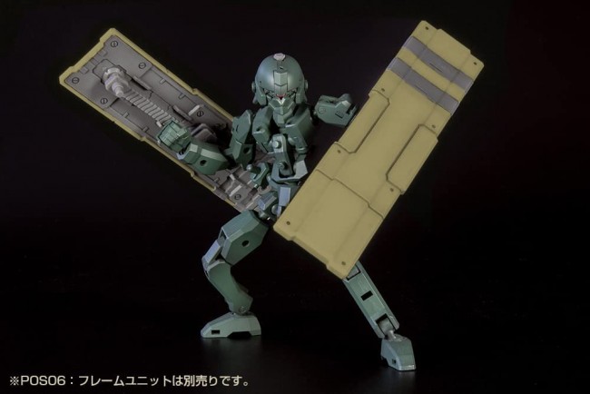 Plastic kit [Size] Approximately 120mm in height (non-scale) [Set Contents] Shield x 2 Stand × 2 Joint with handle x 2 Joint with handle slide x 2 The 10th in the Plastic Action Option Series, the "Soujun" (double shield) of the two large shields. Due to the popularity of this product, color variations are now available. This time, we have prepared 3 (khaki). Khaki matches with military color items. The two large shields, which are large enough to hide your body, can be freestanding and placed freely as obstacles. You can equip them on both arms or let them be held in the hands of the plastic act. Each part has 3mm joints and 3 hard points on the back side of the shields, allowing for a wide range of mixing. The shields can be connected to each other vertically and horizontally, and can also be spread out and fixed using the sliding joints. This kit is not only for plastic acts, but also enhances the expandability of your own plastic kits. This is a plastic kit that requires assembly and painting. Tools and paints are required separately.