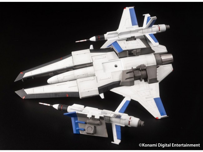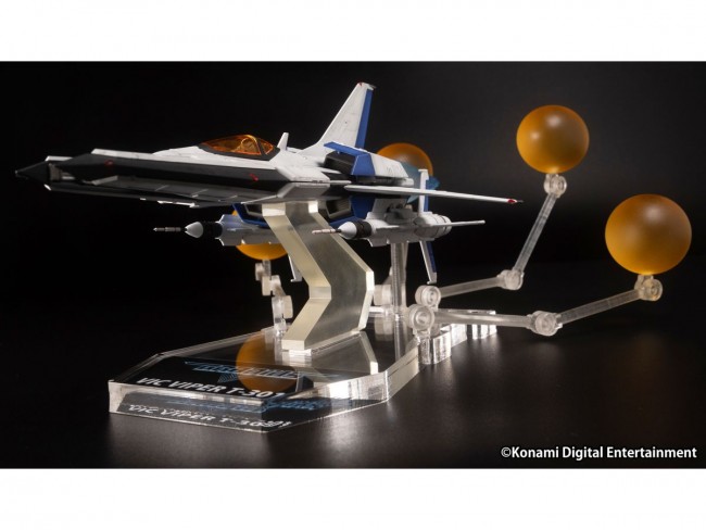 The T-301, which has been very popular as a plastic kit, is finally available as a pre-painted finished product! Vernier spray effects and options with gradation paint are included to fully reproduce the in-game image! The engine cover can be easily attached and detached using the magnetic system. The options can be displayed in your favorite position with the movable arm. A special display base is also included. [VIC VIPER T-301 [PEINTED FINISHED]] Title Gladius V Scale 1/144 Product Spec. Painted polystone finished product Product Size 144mm in length Accessories Vernier jet effect, dedicated display base, 4 options, optional movable arm (C) Konami Digital Entertainment The image is for illustrative purposes only. The actual product does not have a light source. The image is a prototype under development. Actual product may differ.