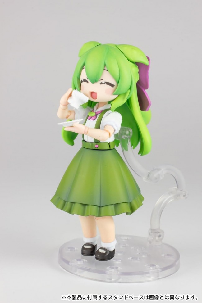 Zundamon” is now available in the PLAFIA series in a new guise, as ‘Lady Zundamon’! This 1/12th scale plastic kit stands approximately 104mm tall. The waist of Zundamon is movable, allowing her to be posed as gracefully or as innocently as you like! Her hairstyle has been changed to long hair to give her a new image, and her fashion has also been changed from pants to a skirt to give her a more girly appearance. In addition to the two pre-printed faces, four plain face parts are included, as well as decals to recreate a variety of facial expressions, allowing you to freely create your own face parts and create your favorite image. The face parts can also be shared with the separately sold “Plafia Zundamon”. A miniature teacup, saucer, and two books (one open and one closed) are also included, allowing you to create a ladylike atmosphere by simply placing them together. Please welcome your very own Miss Zundamon. [Plafia Ojosama Zundamon] Name of work Tohoku Zunko Zundamon Project Series name Plafia Scale 1/12 Product specification Plastic kit Product Size Height approx. 104mm Part Number PP244 Attachment 2 face parts (pre-printed), 4 face parts, 7 hand parts, teacup, saucer, book (open), book (closed), stand base and decals Country of manufacture Japan (C)SSS *The image is a prototype and may differ from the actual product. *This is a plastic kit that needs to be assembled and painted. Tools and paints are required separately. *The image has been painted for the purpose of photography. *Product specifications are subject to change without notice.