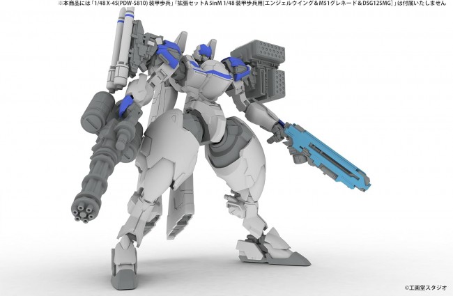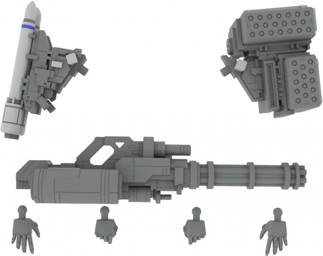 The Expansion Set D for the 5inM 1/48 Armored Infantry is now available. This set includes the DRu35 MLC, R25 Rocket, M7A Gatling Gun, flat hands (left/right), and gripping hands (left/right). Shoulder weapon mounting uses a 3mm shaft, allowing for easy attachment, removal, and left/right reversal. Handheld weapons follow the 5inM universal standard, allowing interchangeability with kits from other series. Newly designed open hands and gripping hands realistically enhance the kit's expression. This product boosts play value with specifications usable beyond the 5inM series boundaries. 【(English Product Name) EXTENSION SET D For 5inM 1/48 PLD[DRu35 MLC& R25RCT&M7AGGUN&Flat hand parts(left and right) &Clenched hand parts(left and right)]】 Title POWERDoLLS2 Series Name 5inch Mechanism Scale 1/48 Product Specifications Plastic Kit Product Size Approx. 100mm (3.97in) Total Length Product Code PP254 Country of Manufacture Japan (C)Kogado Studio ※Images are CG data from development. Actual product may differ. ※This is a plastic kit requiring assembly and painting. Tools, paints, etc. are required separately.