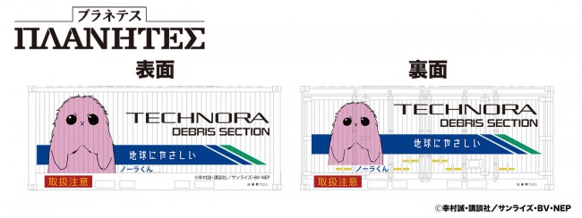 Cargo container printed with Nora-kun, the mascot character of Technora Company that appears in the TV animation “Planetes”. Set of 2 in N gauge size. The 20-foot type is modeled. The containers are realistically reproduced in detail. Logos, etc. are pre-printed, so you can enjoy putting them on your model freight cars as they are. (C) Makoto Yukimura, Kodansha / Sunrise, BV, NEP