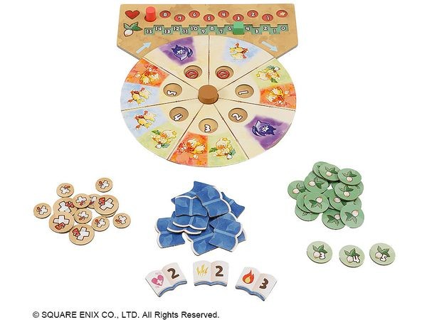 This is a mysterious dungeon. Everyone must work together to guide the chocobos to conquer the dungeon. Dodge monsters and traps, pick up vegetables and items, and collect them. Can you defeat the boss deep in the labyrinth and get Chocobo out of the dungeon safely? Contents Chocobo board (1 set) 3 dungeon boards (both sides) 100 Chocobo cards 15 beginner monster cards 15 advanced monster cards 1 boss tile (both sides) 21 vegetable tokens 15 book tokens 14 damage tokens 1 Chocobo Koma 1 reaper token Vegetable Counter 1 1 life counter Instructions: 4 copies (Japanese, English, German, French) Number of players: 1 to 4 ○Play time: 45 minutes Age: 13 years old and up Main unit size Approx. 265 x 265 x 65 mm (C) SQUARE ENIX CO. The photo is a work in progress. Please note that the actual product may differ.