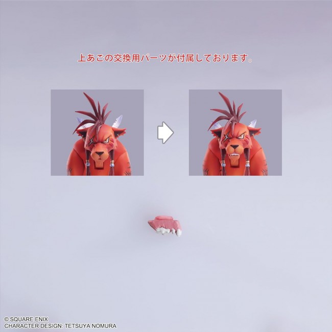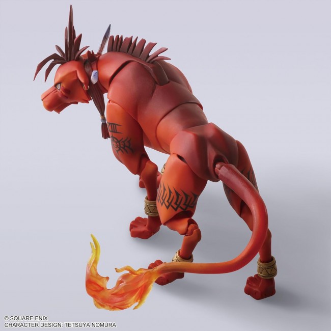 Colored Completed Action Figure [Size] Approximately W41mm x D213mm x H94mm [Material] PVC From "FINAL FANTASY VII", Red XIII appears in BRING ARTS! Based on the original FINAL FANTASY VII, the figure is sculpted with a pointed mane, hair ornament, flaming tail, and tattoos on the legs, recreating the nostalgic appearance of Red XIII's origins. The included replaceable upper jaw part allows the face to be used in battle pose, while the freely movable tail and other parts allow for a wide range of movement throughout the figure, making it possible to recreate a variety of different scenes.