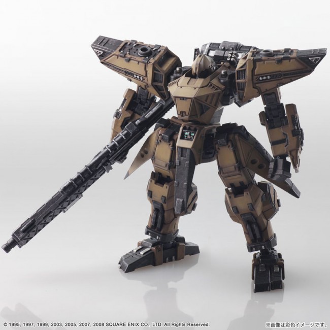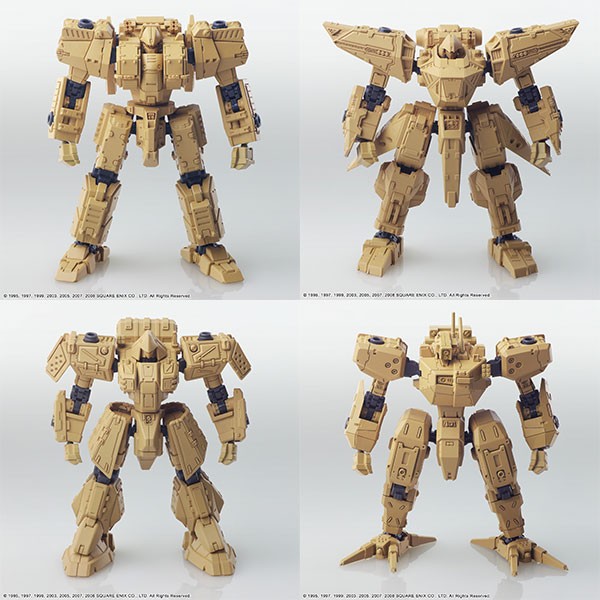 From the plastic model assembly kit series Structure Arts, Front Mission Vol. 5 appeared! FRONT MISSION "STRUCTURE ARTS" Vol. 5 is a lineup of Strong Shield, Hoharu, Meredin and Lexon from Front Mission. FRONT MISSION STRUCTURE ARTS are designed in 1/72 Scale and can be adapted for diorama display with military miniatures of the same Scale. The interchangeability of the torso, arms, lower body, backpack, and hand-held armament is of course reproduced, and a total of four hard points are provided on the shoulders and lower arms to allow for shoulder armament, shields, and other equipment. In addition, utility parts are included so that you can carry armed. Assemble it as is, paint it your favorite color, set it up in various ways, modify it to create your own original aircraft, or create a diorama to enjoy your garden. <KYOJUN / Strong Shield> Aircraft specialized for long-range shooting, equipped with arms with high shooting performance and a fire control system specialized for shooting performance. Product size: approx. W: 70mm x D: 47mm x H: 85mm Weight: 57g Total number of parts: 114 Accessories: Extra face x1, Rifle x1, Machine gun x1, Shield x1, Gatling Gun x1, Stills Backpack x1, Utility Parts set <HOSHUN> Equipped with a strong particle cannon with high output, durability, and evasive performance that has been successfully miniaturized. Product size: approx. W: 87mm x D: 50mm x H: 81mm Weight: 49g Total number of parts: 113 Accessories: Extra Face x1, Strong Particle Cannon x1, Bazooka x1, Machine Gun x1, Shield x1, Turbo Backpack x1, Utility Parts set <MELEDYNE> This aircraft was developed with the main mission of logistical support. Equipped with a state-of-the-art fire control system and new actuators, its firearms have a high hit rate unmatched by other WAPs. Product size: approx. W: 72mm x D: 54mm x H: 84mm Weight: 49g Total number of parts: 119 Accessories: Extra face x1, Rifle x1, Machine gun x2, Shield x1, Missile Launcher x1, Item Backpack x1, Utility Parts set <REXON> A sniper's plane with improved arm stability to increase accuracy at long range. Product size: W:75mm×D:48mm×H:90mm ※Including antenna Weight: 44g Total number of parts: 107 Accessories: Extra head x2, Rifle x2, Machine gun x2, Item backpack x1, Utility parts set . Number of movable parts: 1 each Total number of parts: 28 STRUCTURE ARTS introduction page https://www.jp.square-enix.com/goods/structure_arts/ (C) 1995,1997,1999,2003,2005,2007,2008 SQUARE ENIX CO. The photo is a work in progress. Please note that the actual product may differ.