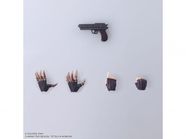 Vincent Valentine from "FINAL FANTASY VII" appears in BRING ARTS! Based on the original FINAL FANTASY VII, the figure's characteristic long hair, crimson bandana and cape, and the metallic gauntlet on his left arm are all recreations of Vincent's nostalgic appearance, which could be called his origin. The texture of the cape and the wrinkles in his clothes are also carefully detailed. Vincent's weapon, the gun, and various interchangeable hands, including its handle, are included as accessories, allowing the figure to be used in a variety of scenes from the film. FINAL FANTASY VII Bring Arts Vincent Valentine: Number of posable parts: 28 Size: approx. W76mm x D58mm x H153mm, weight: approx. 76g (C) SQUARE ENIX CHARACTER DESIGN: TETSUYA NOMURA The photo is a work in progress. Please note that the actual product may differ.