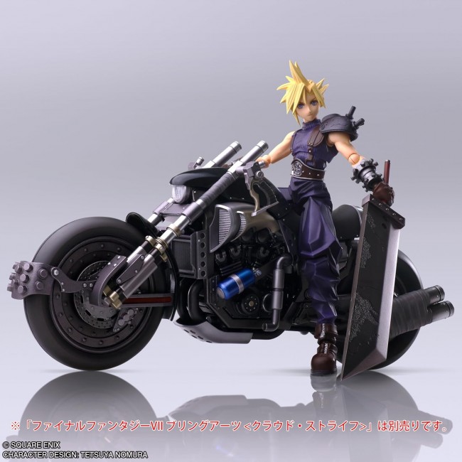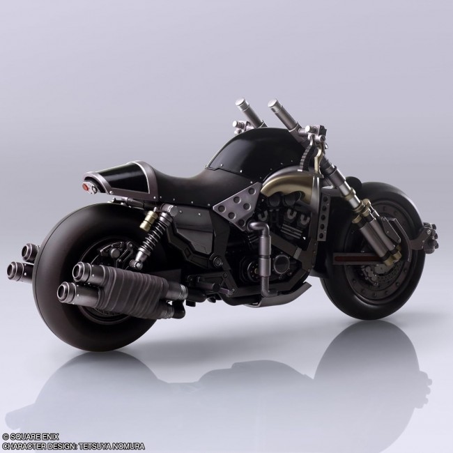 [Size] Approx. W63 x D225 x H108mm From "FINAL FANTASY VII", the latest model of the Shinra motorcycle, Hardy Daytona, is joining the BRING ARTS series! Based on the original FINAL FANTASY VII, the figure is sculpted with a heavy body and tires, a black metallic frame, unique handlebars and engine structure, and other features that give it a strong impact. The handlebars are movable at the base of the shaft, allowing the figure to be posed leaning forward and grasping the handlebars. The stand is movable and can stand up, and both the front and rear wheels can rotate. The included handle is a replacement for the "FINAL FANTASY VII BRING ARTS Cloud Strife" (sold separately).