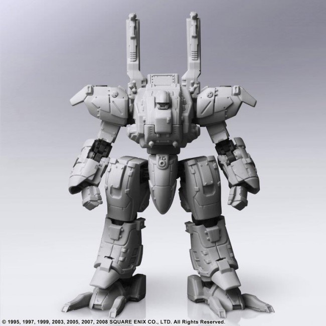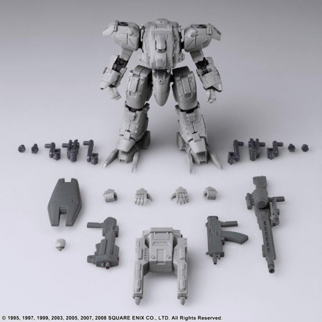 Vol.1, Vol.2 and Vol.3 of FRONT MISSION STRUCTURE ARTS are re-released with new molding color (light gray). FRONT MISSION STRUCTURE ARTS are designed in 1/72 Scale and can be adapted for diorama display with military miniatures of the same Scale. The interchangeability of the torso, arms, lower body, backpack, and hand-held armament is of course reproduced, and a total of four hard points are provided on the shoulders and lower arms to allow for shoulder armament, shields, and other equipment. Product size: Approximately W 70mm × D 51mm × H 107mm Weight: 61g Total number of parts: 129 (C) 1995, 1997, 1999, 2003, 2005, 2007, 2008 SQUARE ENIX CO. The photo is a work in progress. Please note that the actual product may differ.