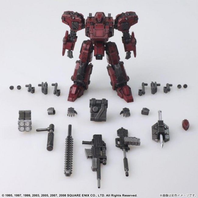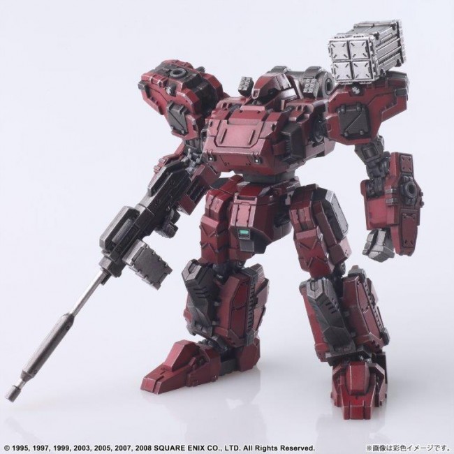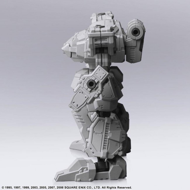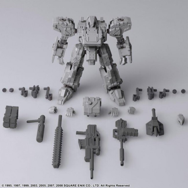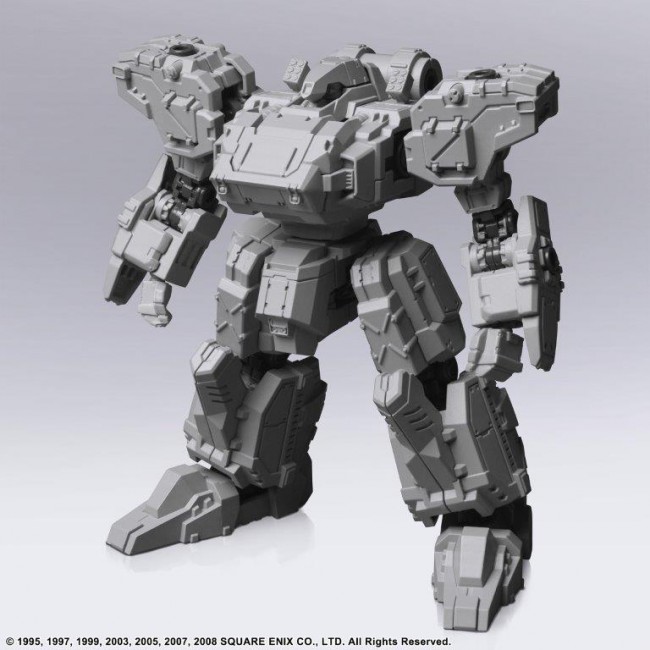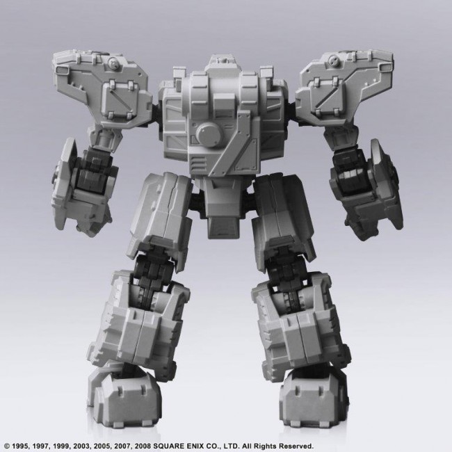 Vol.1, Vol.2 and Vol.3 of FRONT MISSION STRUCTURE ARTS are re-released with new molding color (light gray). FRONT MISSION STRUCTURE ARTS are designed in 1/72 Scale and can be adapted for diorama display with military miniatures of the same Scale. The interchangeability of the torso, arms, lower body, backpack, and hand-held armament is of course reproduced, and a total of four hard points on the shoulders and lower arms allow for shoulder armament, shields, and other equipment. Product size: Approximately W 77mm x D 48mm x H 84mm Weight: 67g Total number of parts: 119 (C) 1995, 1997, 1999, 2003, 2005, 2007, 2008 SQUARE ENIX CO. The photo is a work in progress. Please note that the actual product may differ.