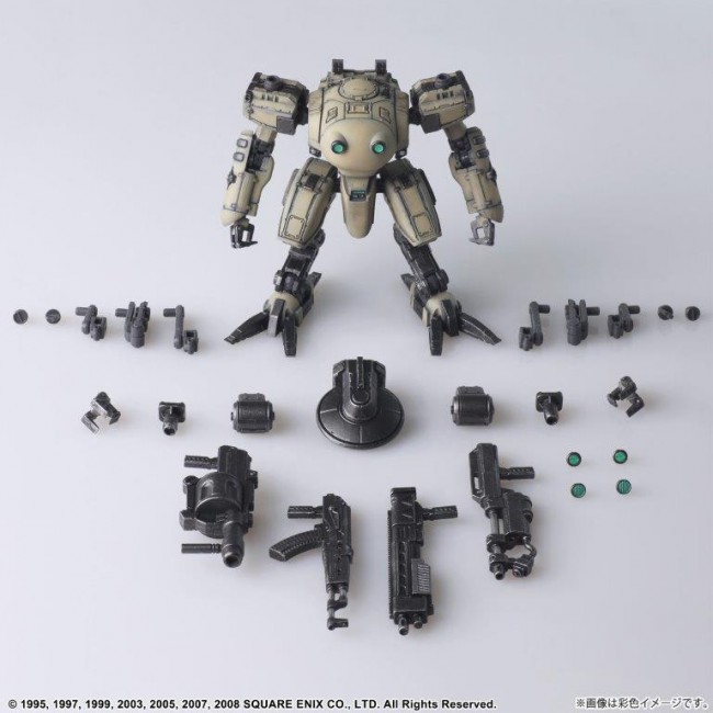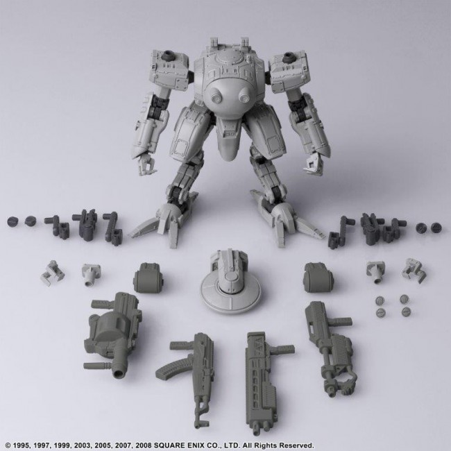 Vol.1, Vol.2 and Vol.3 of FRONT MISSION STRUCTURE ARTS are re-released with new molding color (light gray). FRONT MISSION STRUCTURE ARTS are designed in 1/72 Scale and can be adapted for diorama display with military miniatures of the same Scale. The interchangeability of the torso, arms, lower body, backpack, and hand-held armament is of course reproduced, and a total of four hard points on the shoulders and lower arms allow for shoulder armament, shields, and other equipment. Product size: Approx. W 77mm x D 68mm x H 72mm Weight: 51g Total number of parts: 121 (C) 1995, 1997, 1999, 2003, 2005, 2007, 2008 SQUARE ENIX CO. The photo is a work in progress. Please note that the actual product may differ.