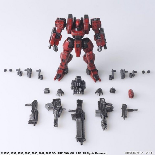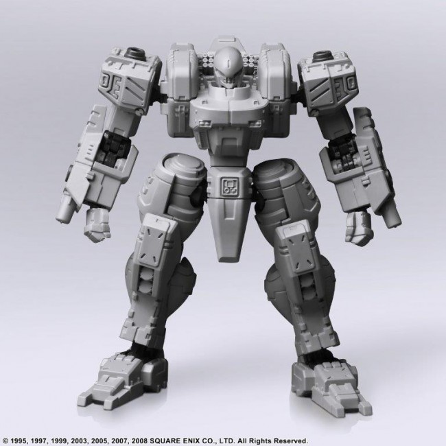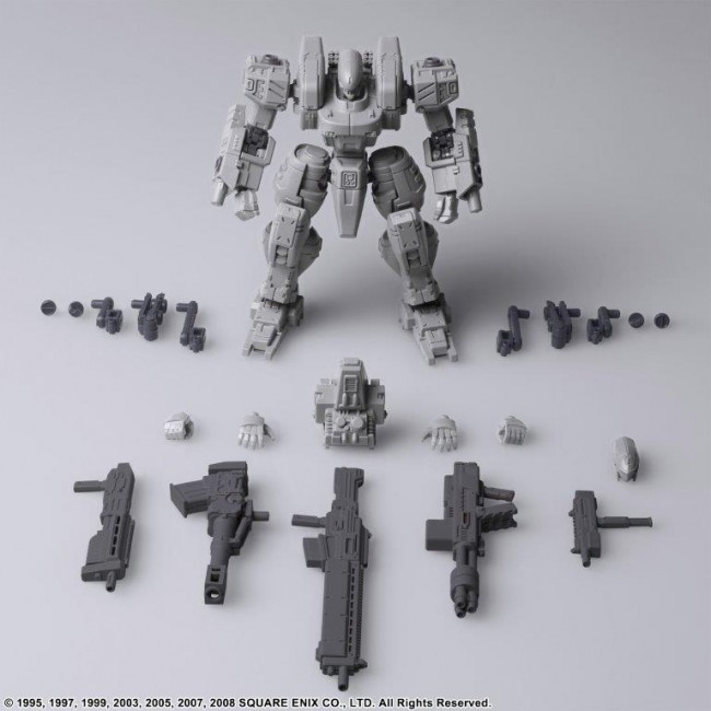 Vol.1, Vol.2 and Vol.3 of FRONT MISSION STRUCTURE ARTS are re-released with new molding color (light gray). FRONT MISSION STRUCTURE ARTS are designed in 1/72 Scale and can be adapted for diorama display with military miniatures of the same Scale. The interchangeability of the torso, arms, lower body, backpack, and hand-held armament is of course reproduced, and a total of four hard points are provided on the shoulders and lower arms to allow for shoulder armament, shields, and other equipment. Product size: Approximately W72mm × D40mm × H84mm Weight: 70g Total number of parts: 118 (C) 1995, 1997, 1999, 2003, 2005, 2007, 2008 SQUARE ENIX CO. The photo is a work in progress. Please note that the actual product may differ.