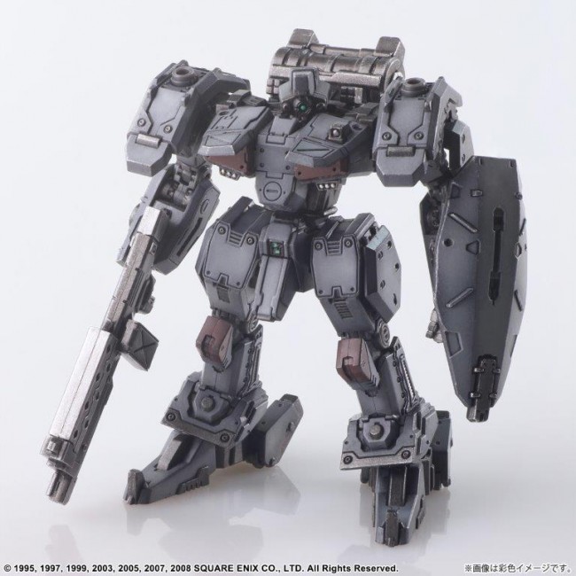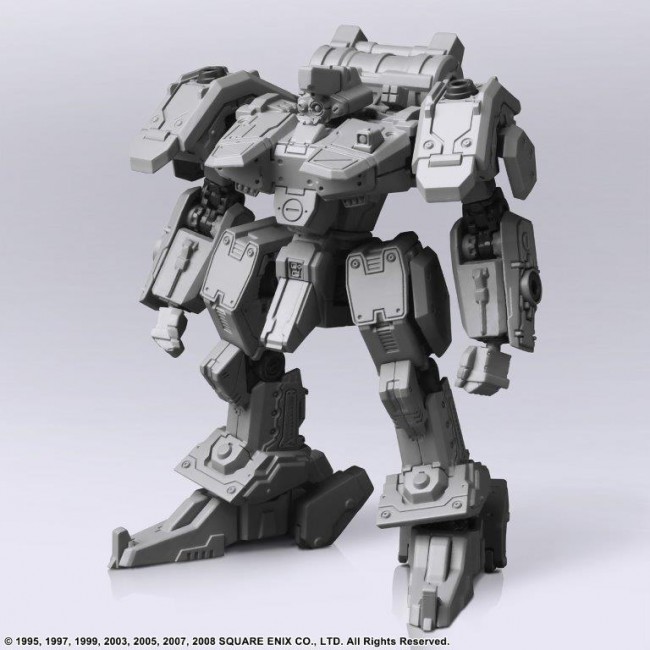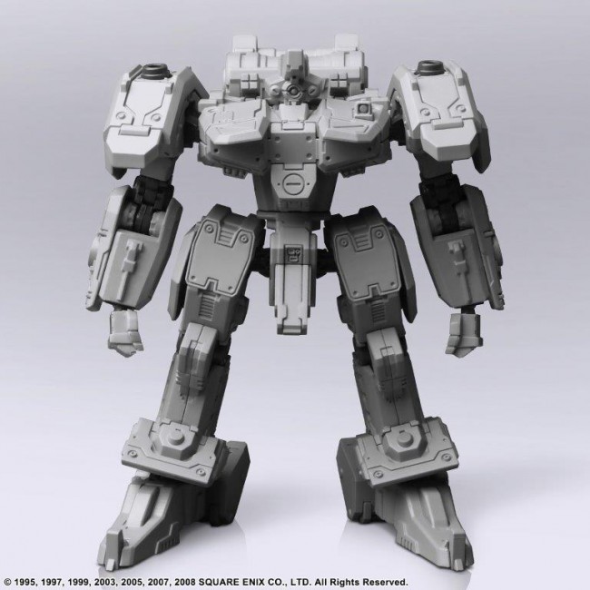 Vol.1, Vol.2 and Vol.3 of FRONT MISSION STRUCTURE ARTS are re-released with new molding color (light gray). FRONT MISSION STRUCTURE ARTS are designed in 1/72 Scale and can be adapted for diorama display with military miniatures of the same Scale. The interchangeability of the torso, arms, lower body, backpack, and hand-held armament is of course reproduced, and a total of four hard points are provided on the shoulders and lower arms to allow for shoulder armament, shields, and other equipment. Product size: Approximately W73mm × D49mm × H90mm Weight: 85g Total number of parts: 123 (C) 1995, 1997, 1999, 2003, 2005, 2007, 2008 SQUARE ENIX CO. The photo is a work in progress. Please note that the actual product may differ.