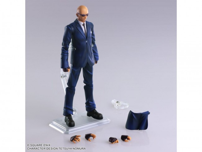 From “FINAL FANTASY VII”, a member of the Shinra Company's General Affairs Department's Research Division, also known as the Turks, Rude appeared in BRING ARTS! The sculpt is based on the original FINAL FANTASY VII, He is dressed in his trademark skinhead, sunglasses, and Turk's matching suit, The figure is based on the original FINAL FANTASY VII, and reproduces the nostalgic appearance that can be called the origin of Rude. His strong and muscular body can be seen even over the suit, The distinctive design of the suit and boots, and other details have been carefully reproduced. Various replacement hands are included as accessories, In addition, by replacing the hem part of the back, it is possible to express the pose with hands in the pockets. Size: Approximately W56 × D29 × H160mm Package: approx. W180 x D70 x H230mm (C) SQUARE ENIX CHARACTER DESIGN: TETSUYA NOMURA The photo is a work in progress. Please note that the actual product may differ.