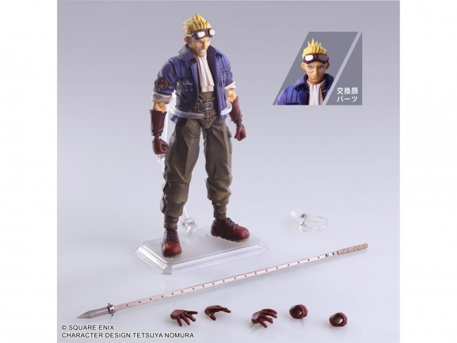 From "FINAL FANTASY VII", the pilot of the airship, Sid Highwind, appears in BRING ARTS! The figure is based on the original FINAL FANTASY VII, with a stubble on his face, goggles on his head, a scarf around his neck, and a flight jacket, all of which bring back memories of the original. The figure can also be posed with his hands in his pockets by inserting his wrists into the pockets of his pants, while also paying attention to details such as the shape of his boots and pants with the legs tightened. She also comes with a spear longer than her body length, a replaceable face, and various replaceable hands, allowing you to pose her in a variety of scenes. FINAL FANTASY VII Bring Arts Cid Highwind: Number of posable parts: 25 Size: approx. W70mm x D31mm x H153mm, weight: approx. 87.5g (C) SQUARE ENIX  CHARACTER DESIGN: TETSUYA NOMURA The photo is a work in progress. Please note that the actual product may differ.