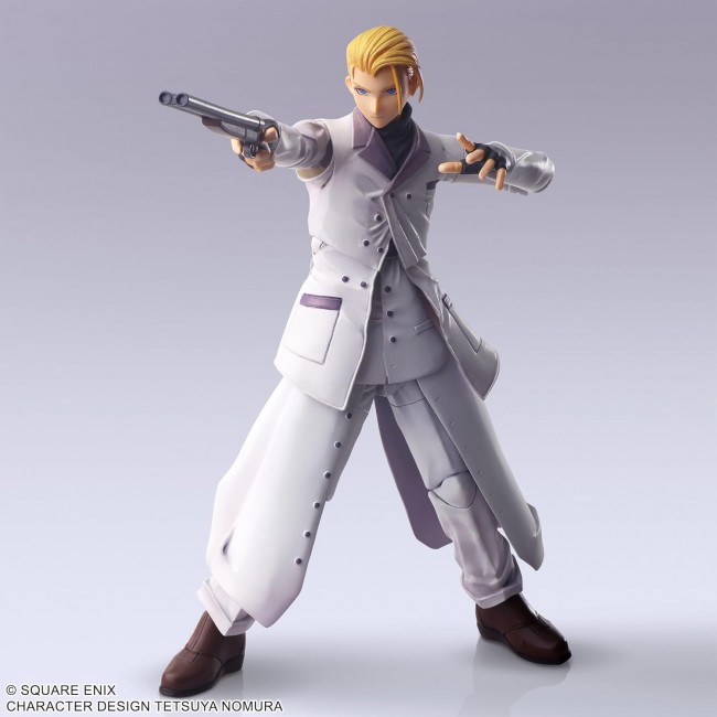 From “FINAL FANTASY VII”, Rufus Shinra, son of President Shinra of Shinra Company, appears in BRING ARTS! The sculpting is based on the original FINAL FANTASY VII, His golden hair is slicked back, and he has a confident, ambitious expression on his face, The golden hair back, the confident and ambitious expression on his face, the pure white suit and coat, etc., recreate the nostalgic appearance that can be called the origin of Rufus. The intricate dressing of the coat and the suit beneath it, It is a gem of a three-dimensional product that takes advantage of the charm of the distinctive design of the original work while ensuring the range of motion. Accessories include the gun used by Rufus, and various interchangeable hands, In addition, by replacing part of his jacket, he can be posed with his hands in his pockets. Size: Approximately W61 × D30 × H145.5mm Package: approx. W180 x D70 x H230mm (C) SQUARE ENIX CHARACTER DESIGN: TETSUYA NOMURA The photo is a work in progress. Please note that the actual product may differ.
