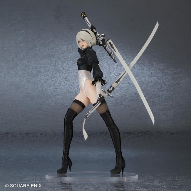 From the action RPG "NieR: Automata" comes a three-dimensional figure of 2B (Yoruha No. 2 Type B) once again! From the action RPG "NieR: Automata", 2B (Yoruha No. 2 Type B) has been sculpted again! Mitsumasa Yoshizawa has produced the prototype and coloring samples, and has created a beautiful and dignified figure in a more dynamic pose, carrying two types of swords, the White Contract and the White Promise. The details of each part of the figure have been delicately reconstructed in the production of Version 2.0. In addition to the 2B figure itself ("face with goggles" and "body with heat sinking skirt"), "bare face" and "body without heat sinking skirt" are included as replacement parts, allowing you to enjoy a variety of display variations by replacing the head and body. NieR: Automata 2B (Yoruha No. 2 Type B) Version 2.0 Sculpting and coloring by Mitsumasa Yoshizawa (REFLEFLEMENT): Mitsumasa Yoshizawa (REFLECT) Size: Height: approx. 285mm (up to the top of the head) / approx. 325mm (up to the top of the white handle) Included parts: 2B body (goggles-wearing face, head and body with heat radiation skirt already assembled), 2B replacement parts (bare face, head and body without heat radiation skirt), white contract, white agreement, exclusive stand (C) SQUARE ENIX *Photographs are of the product under production. Please note that the actual product may differ.