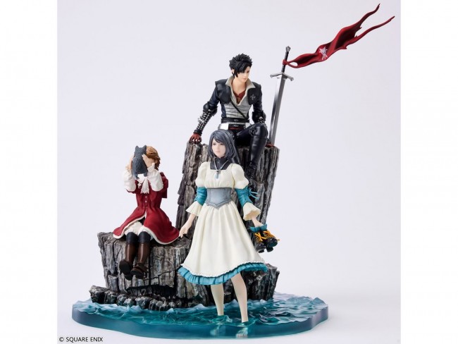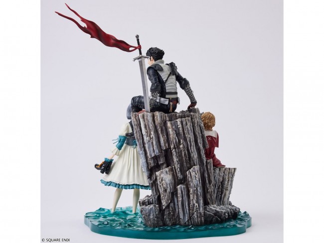 FINAL FANTASY XVI" from FORM-ISM SCENE! From the "SCENE" line of three-dimensional diorama figures, "FFXVI"'s striking image art "The Homeland" has been sculpted as a motif for this figure. Clive, Jill, and Joshua have been sculpted in fine detail to recreate the atmosphere of the artwork, and the bottom of the water has been reproduced with clear parts. Size Approx. 20 cm (C) SQUARE ENIX The photo is a work in progress. Please note that the actual product may differ.