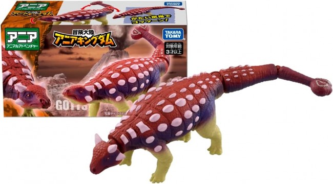 A single figure of Gotts (Ankylosaurus) is now available in the "Adventure Continent Aniakdom" series! Gotts (Ankylosaurus) has a movable neck and tail. Set includes: Figure (1), Character Card (Japanese) (1), Character Card (English) (1) (C) TOMY