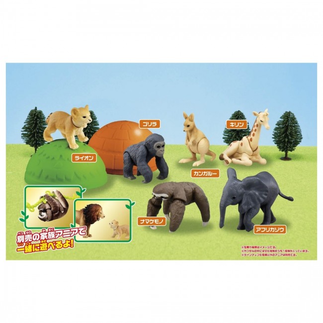 Each figure is movable in some way. The capsule can be used as a base for the figures to play together.The figures are all movable. This is a capsule toy for Ania Animals are gathered! Gachatto Korokoro Tree.