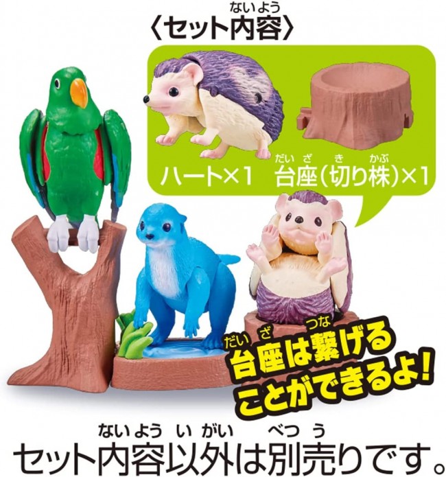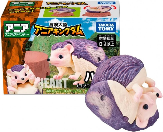 The "Adventure Continent: Ania Kingdom" series is pleased to announce the release of a new stand-alone figure of "Heart (Yotsubi Hedgehog)"! Heart (Yotsubi Harinezumi) can move its neck and stomach, curl up, and ride on the attached stump. Set includes: Figure (1), base (stump) (1), character card (Japanese) (1), character card (English) (1) (C) TOMY
