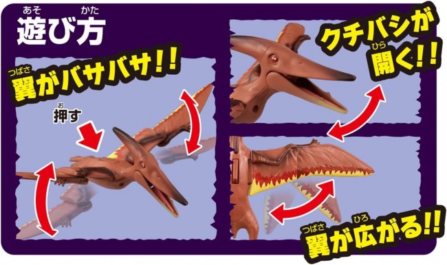 Puteira (Pteranodon)" from "Adventure Continent Ania Kingdom" is now available as a big size ania measuring approximately 30cm in width! Press the switch and the wings move! Enjoy the "flapping action"! Puteira (Pteranodon) opens its beak and spreads its wings to move. In addition, when you press the switch on its back, the wings move up and down, allowing you to enjoy the "flapping action". Contents] Main body (1) (C) TOMY