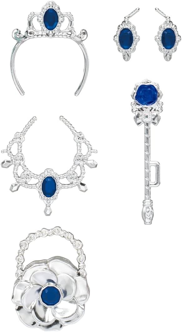Here is Maria, the newest addition to the Fantasy Princess family, a princess in a gorgeous hairstyle with braided pearl beads and a snowflake patterned dress. Maria is wearing a super long braided hairstyle and a dress decorated with snowflakes. Arrange her with a fluffy cape and sparkling accessories to create a fantasy princess world. She comes with a silver tiara, necklace, walking stick, bag, earrings, and clear blue pumps. Set includes: Doll (wearing underwear and dress) (1), cape (1), necklace (1), tiara (1), bag (1), walking stick (1), earrings (1), shoes (1) (C) TOMY