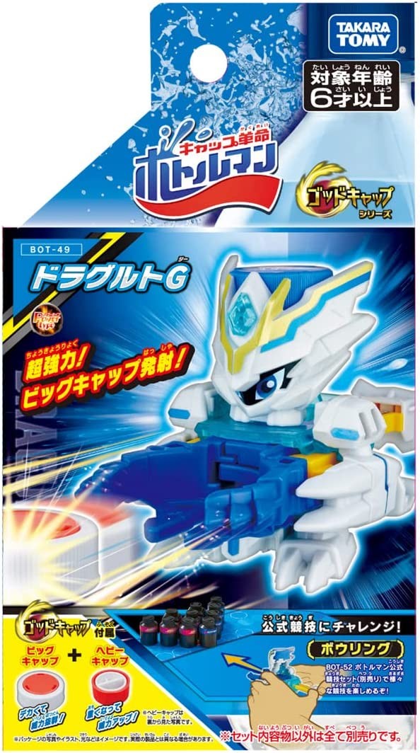 Collectible Toys (Sci-Fi/Animation Character, Completed) God Cap series that comes with God Cap with ability! This power-specific Bottleman is capable of firing Big Caps with a mode change! The included God Cap can be changed to either a larger-than-usual Big Cap or a heavier-than-usual Heavy Cap by replacing the parts. Dragurt G is capable of firing the powerful God Cap! Let's try bowling! Product Contents Core body (including head cap) (1), armor (1), normal cap (1), big cap ring (1), weight parts (1), sticker (1), instruction manual on how to play properly (1) (C) TOMY (From TOMY website)