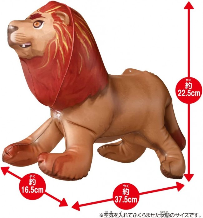 Leonie (Lion)" from "Adventure Continent Ania Kingdom" is now available as a big size air vinyl figure! When filled with air, the figure becomes a big size of approx. 375mm (width) x 225mm (height) x 165mm (depth)! Not intended for use on the water. Please do not use it as a float or float replacement. Set Contents] Main body (1) (C) TOMY