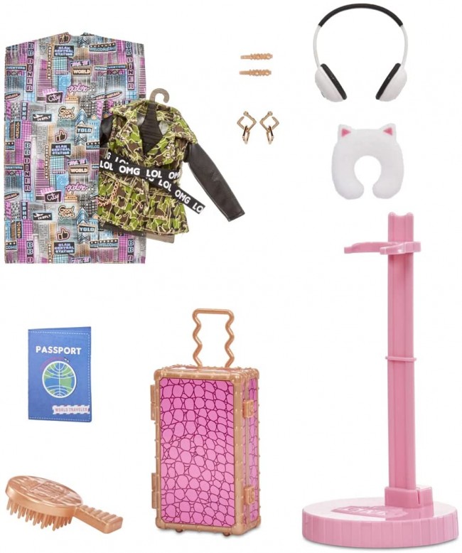The theme is L.O.L. L.O.L. Surprise! O.M.G. World Travel "15 Surprise" fashion dolls are now available! ・ O.M.G.World Travel is a 15-surprise fashion doll! Get ready for your trunk case and go on a journey! There are plenty of travel-themed fashion and accessories such as neck pillows, headphones, and passports. -Open the package and it will become the background of the display as a play set. ・ There are 3 types of O.M.G. World Travel. Let's collect and play! -City Babe Character Introduction: City Babe was born in the "city" and grew up in the "city". I love the noisy surroundings. Although she is a fashion designer, she is also active as a movie creator. She is preparing to shoot the runway for the upcoming fashion show. I'm traveling around the world from city to city, mixing all the inspiration I feel on my trip to create a cool streetwear look. * Sold separately except for the set contents. The contents vary depending on the character. * Images and illustrations are for illustrative purposes only. Some items may differ from the actual product. [Set contents] OMG doll (wearing costume) (1), costume set (1), hanger (1), garment bag (1), shoes (1), accessories (4), passport (1), earrings (1) , Brush (1), Doll stand (1), How to use the stand (1) (c) TOMY (c) MGA
