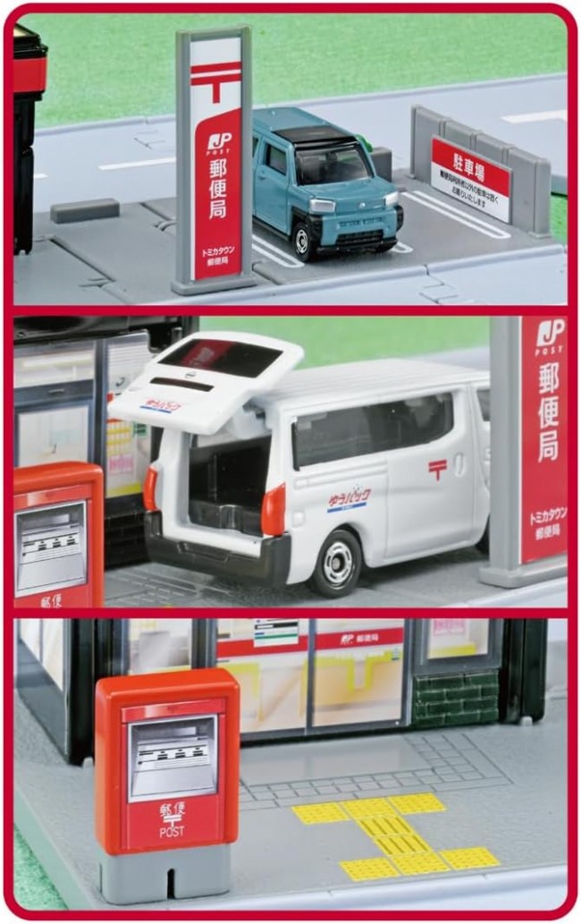 Tomica Town, which can be opened and played right away, now includes a post office! Nissan NV350 Caravan with cargo car! You can park your Tomica in the parking lot of the post office. Post box and signboard are included. No assembly or labeling required. When not in use, it can be folded for compact storage. All other Tomica (miniature cars) are sold separately. Set includes] post office (1), mailbox (1), signboard (1), Tomica (1) (C) TOMY Japan Post approved