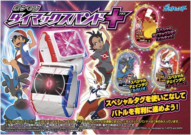 The Dymax Band is now available in a new, powered-up version! Together with the included three special tags, you can take advantage of Pokemon Mezasta battles! Dymax Band + (Plus) works with Pokemon Mezasta to ensure Dymax activation! And if the tag you link to Dymax Band+ is a "Kyodymax-able Tag," the damage of Dymax moves may be super-increased! This special set comes with a "Special Dymax Tag" of Kyodimaxable Pikachu and three "Special Chain Tags" of Lucario and Aceburn for use in Pokemon Mezasta! When you shake the Dymax Band+, character voices sound in response to vibrations, and you can experience Dymax with sound effects, cheering background music, and light effects. The "Dymax Mode" lets you experience the process of activating Pikachu, Lizard, and Gengar's Dymax moves, while the "Cheering Mode" plays 18 different cheering voices of Satoshi, Gou, and Dande. The "Cheering Mode" is equipped with two types of modes. *A Dymax tag is required to activate Dymax in Pokemon Mezasta. *Dymax can be activated once per battle. Special Chain Tags for "Lucario" and "Aceburn" do not work with the Dymax Band+. Contents】Body(1), Special Chain Tag "Lucario"(1), Special Chain Tag "Ace Burn"(1), Special Dymax Tag "Pikachu"(1), Instruction Manual(1) (c)Nintendo/Creatures/GAME FREAK/TV Tokyo/ShoPro/JR Kikaku (c)Pokemon (c)2022 Pokemon.(c)1995-2022 Nintendo/Creatures Inc./GAME FREAK inc. Includes test batteries (2 x LR44 button batteries) *To prevent accidental ingestion, the battery case lid is screwed on. When discarding the button batteries, wrap tape around the batteries to insulate them.