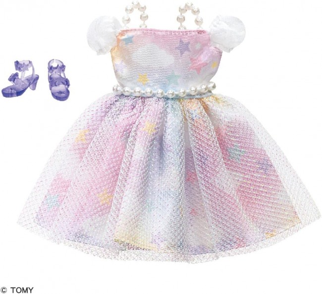 Fairy tale fluffy dress with sky motif♪ Now available at a value price! This dress features a dream-colored sky pattern print. Comes with clear purple star sandals. [Set contents] Dress (1), shoes (1), *Doll sold separately. (C)TOMY