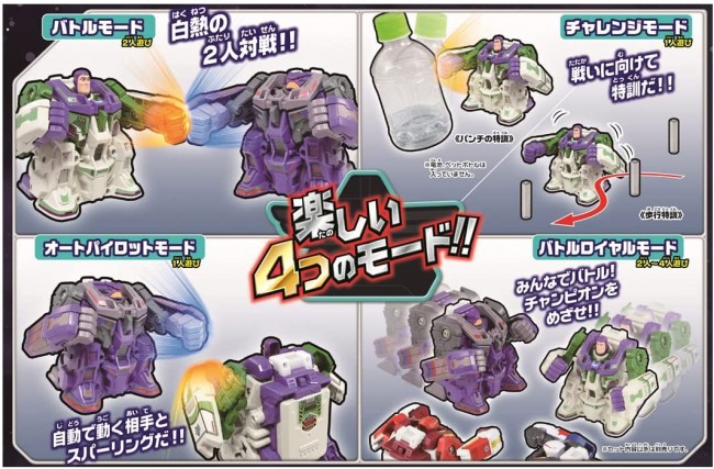 Let's go, let's go, let's go! The popular battle robot RC "Butt Buster" is now available in a "Bass Lightyear" version! Intuitive and easy to control, punch your opponent twice and send him flying! Easy-to-understand victory and exhilaration! Two sets, Buzz Lightyear and Zerg, let you start full-fledged battles right away! Punching GimmickHit a weak spot twice to knock out your opponent and win the battle! Intuitive ControlsShake the right controller to punch right and left to move forward while punching left! Intuitive controls make it easy to play! The pilot figures of Buzz Lightyear and Zerg fly the aircraft, which is based on the motifs of Bass Lightyear and Zerg. Sound Link SystemBy linking the controller with the aircraft, the background music and play-by-play commentary make the battle even more exciting! Challenge Mode: A 30-second time-limited mode that allows a single player to play alone. Players can freely beat obstacles, move to designated areas, and more! Auto Pilot ModeA CPU battle mode that can be enjoyed by one person even if he/she has two units. Sharpen your skills against the CPU, which moves automatically for about 1 minute! Battle Royale modeMultiplayer mode where you can play against up to 4 opponents. Beat them all! (All other models are sold separately.) [Contents Contents】Body(2),Figure(2),Controller(2),Instructions(1),Label(1) (c) Disney/Pixar Uses 10 AAA alkaline batteries (batteries sold separately) Main unit: 3 x 2, Controller: 2 x 2