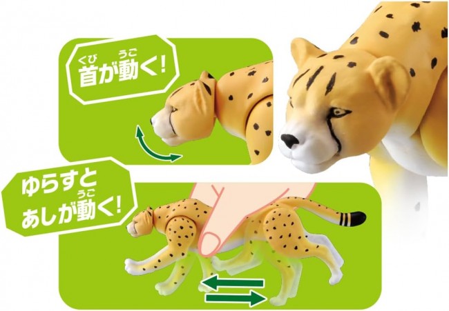 Finished dinosaurs and animals. Cheetah (Running Ver.)" is now available in the Ania AS series! Cheetah (Running Ver.) has a movable head and legs. When you hold the back of the figure and shake it, the legs move as if it were running. Contents Figure (1), illustrated card (Japanese) (1), illustrated card (English) (1) (C) TOMY (From TOMY website)