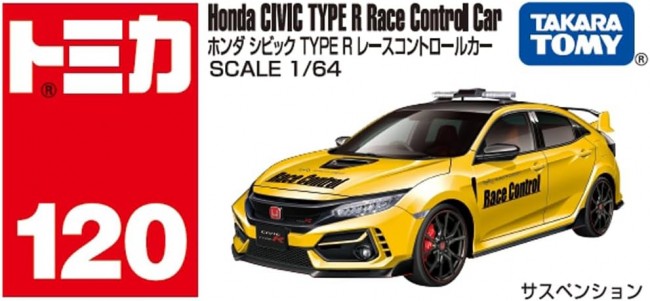 The "Honda Civic TYPE R Race Control Car" is now available as a Tomica. Suspension (C) TOMY
