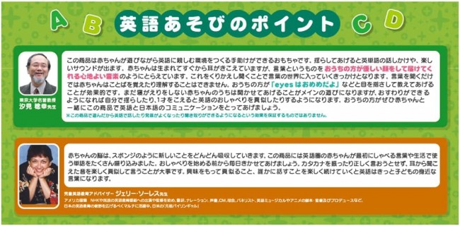A palm-sized lolly that plays English chatter and songs when you shake it! Turns on the English switch for babies in the "golden age of hearing"! The "golden age of the ear" is when a newborn baby has the advanced hearing ability to distinguish all the sounds that are not found in Japanese. How to play (1)Talking Funny Mode Every time you shake the device, it speaks a word in English! The words are spoken and sound effects are also emitted. This is the main mode where you can listen to the chatter together. How to play (2)Melody mode A children's song with English lyrics will play. Place it by your baby's side and let him or her listen to the music. Three cute music songs are included. *The voices emitted from the main unit are not the voices of the characters. All voices are in English. Set Contents】English switch (1), Instruction manual (1) (c)Disney. Based on the "Winnie the Pooh" works by A.A. Milne and E.H.Shepard Uses 3 AAA alkaline batteries (batteries sold separately)